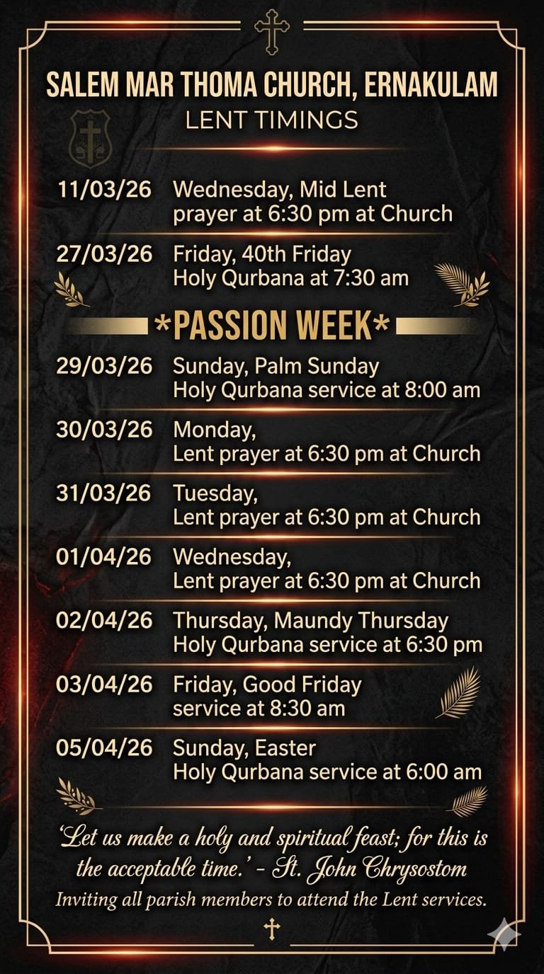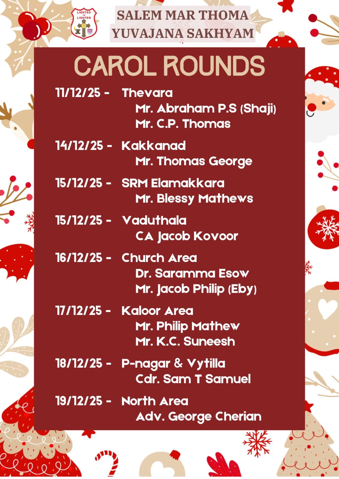 | Sevika Sangham | Every tuesday at 10.30 am at church and at Thevara Area Cottage Prayer on last Tuesday of every month at 10.30 am |