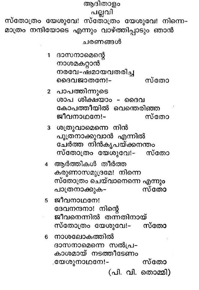 സ്തോത്രം യേശുവേ സ്തോത്രം യേശുവേ