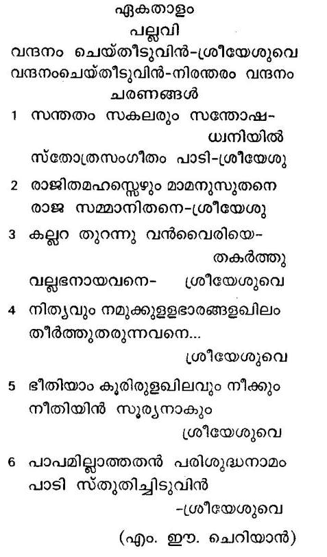 വന്ദനം ചെയ്തീടുവിൻ ശ്രീയേശുവേ