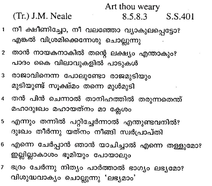 നീ ക്ഷീണിച്ചോ നീ വലഞ്ഞോ