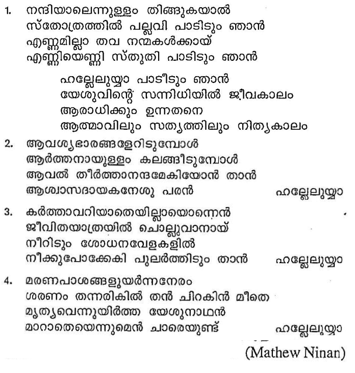 നന്ദിയാലെന്നുള്ളം തിങ്ങുകയാൽ