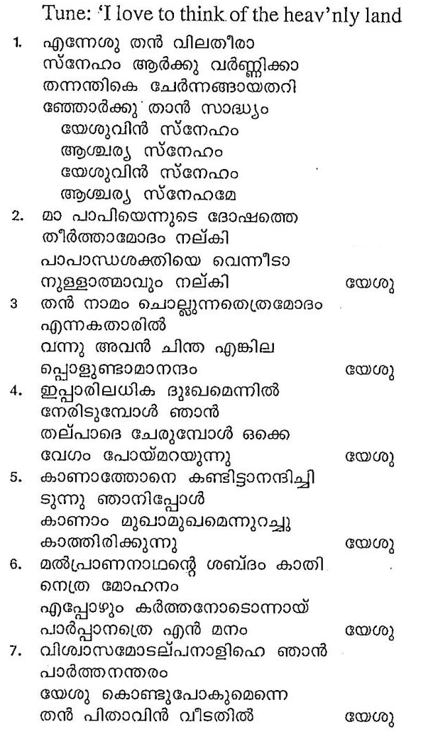 എന്നേശു തൻ വിലതീരാ സ്നേഹം